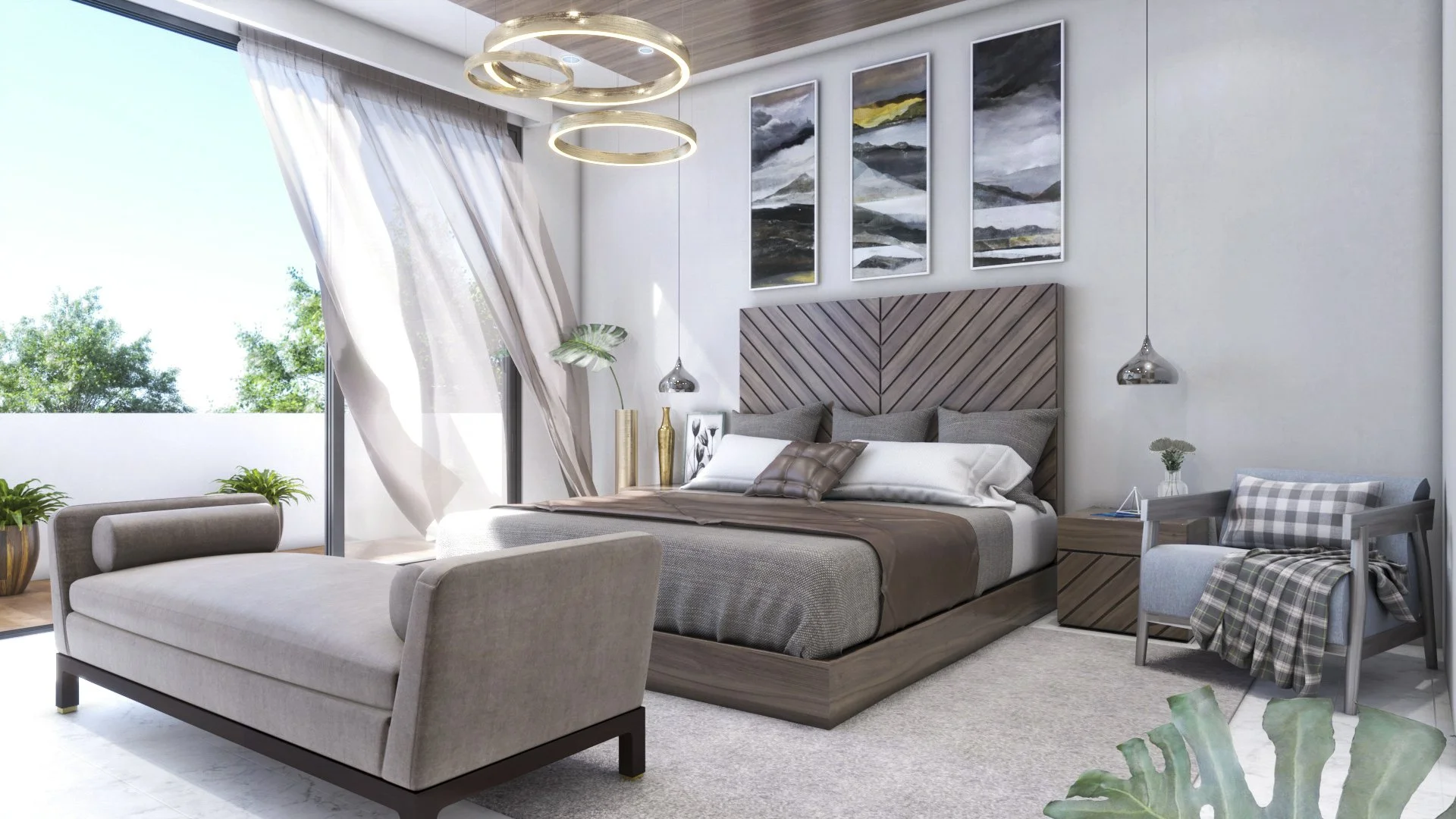 Basada en arquitectura contemporánea con materiales como vigas de acero en tono negro semimate, pintura blanca y muros de acento con piedra de la región.
